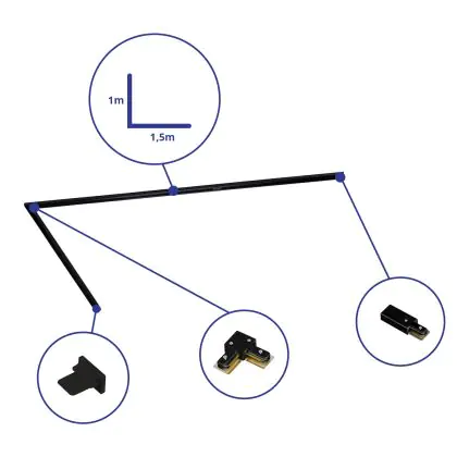Bright Choice Rail Set 1-Phase L 1 x 1,5 Meter Black | incl. End Cap, Power Connector and L -Connector