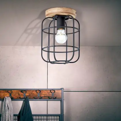 Brilliant Gwen Ceiling Light Metal Wood Black | 200mm - Suitable for 1x E27