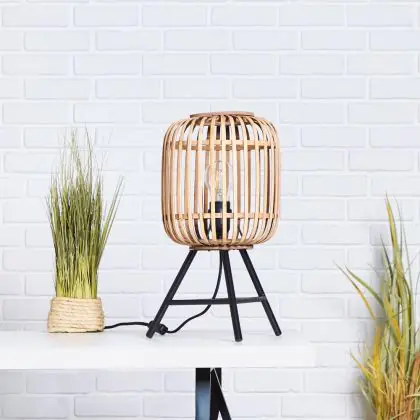 Brilliant Table Lamp Woodrow Metal Bamboo Brown | Suitable for 1x E27