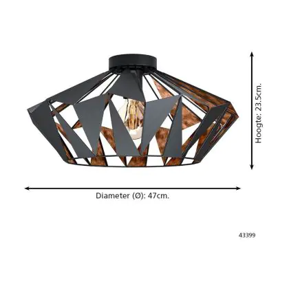 Eglo Ceiling Light Carlton 6 Steel Black Copper | IP20 - Suitable for 1x E27