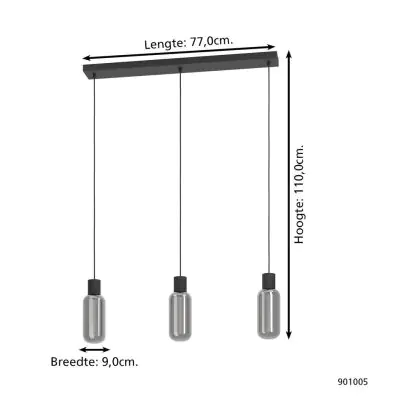 Eglo Pendant Maione Steel Black | IP20 - Suitable for 3x E27