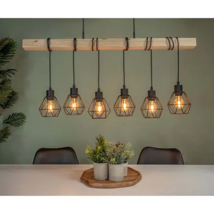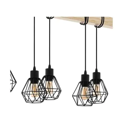 Eglo Pendant Townshend 5 Steel Wood Black | IP20 - Suitable for 6x E27