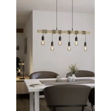 Eglo Pendant Townshend Steel Wood Black Brown | IP20 - Suitable for 6x E27