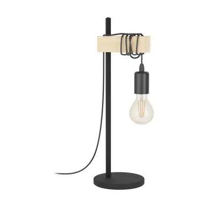 Eglo Table Lamp Townshend Steel Wood Black Brown | IP20 - Suitable for 1x E27