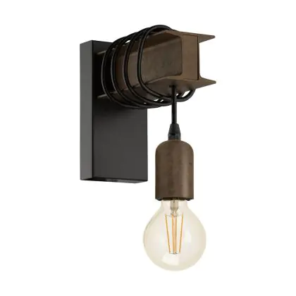 Eglo Wall Light Townshend 4 Steel Black Brown | IP20 - Suitable for 1x E27