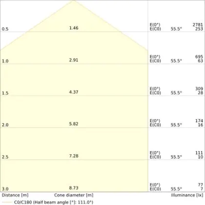 The Luminous Efficacy (lm/W) indicates how efficiently a light source uses energy. We divide the number of lumens by the wattage. The higher the number, the more efficient a product is in terms of energy consumption. LED lighting has a considerably higher lumen/Watt ratio than conventional lighting.