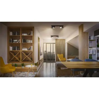 A fixture with a tiltable design makes it possible to direct the lighting specifically at an object or surface. This can play a particularly important role in shops (putting a new collection in the spotlight) or galleries (accentuating works of art). It can also influence the purchasing behaviour or interpretation of visitors.
