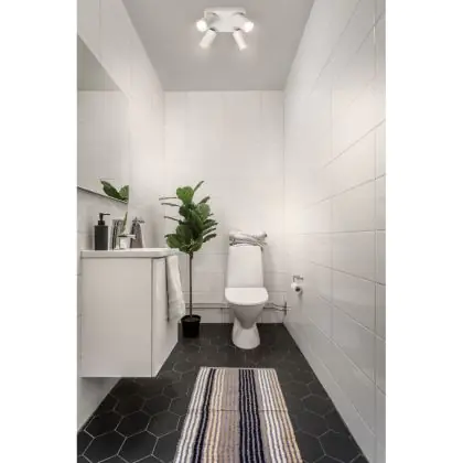 A fixture with a tiltable design makes it possible to direct the lighting specifically at an object or surface. This can play a particularly important role in shops (putting a new collection in the spotlight) or galleries (accentuating works of art). It can also influence the purchasing behaviour or interpretation of visitors.