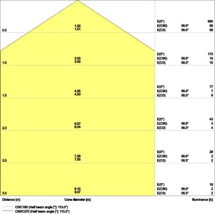 ![]() The colour code is a combination of colour rendering (CRI) and light colour (Kelvin). The first number indicates the colour rendering (1 = very poor colour rendering, 9 = maximum colour fastness). The second and third number contains the light colour. Example: the colour code 830 consists of good colour rendering (8) and warm white light (3000K). |
