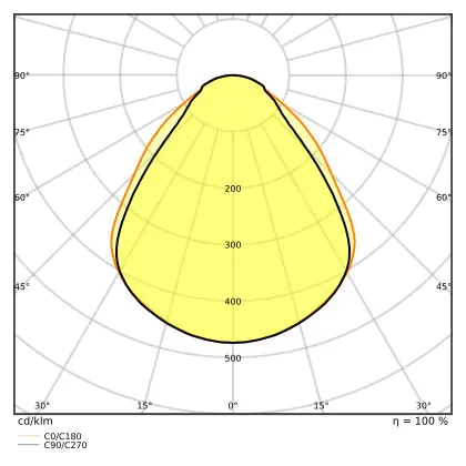 The Luminous Efficacy (lm/W) indicates how efficiently a light source uses energy. We divide the number of lumens by the wattage. The higher the number, the more efficient a product is in terms of energy consumption. LED lighting has a considerably higher lumen/Watt ratio than conventional lighting.