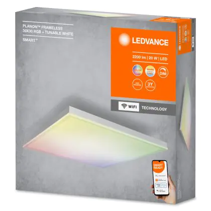 Ledvance LED Panel Smart+ Planon Frameless 20W 1500lm - 830-865 Tunable White + RGB | 30x30cm - UGR <25 - Wifi Dimmable
