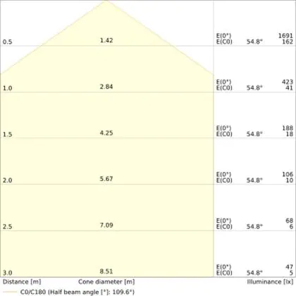 The Luminous Efficacy (lm/W) indicates how efficiently a light source uses energy. We divide the number of lumens by the wattage. The higher the number, the more efficient a product is in terms of energy consumption. LED lighting has a considerably higher lumen/Watt ratio than conventional lighting.