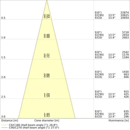 A beam angle indicates the angle of the light beam coming from a light source. The smaller the radiation angle in degrees (D), the narrower the beam angle.
