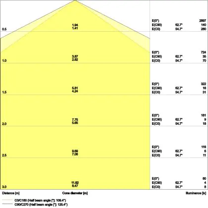 ![]() The colour code is a combination of colour rendering (CRI) and light colour (Kelvin). The first number indicates the colour rendering (1 = very poor colour rendering, 9 = maximum colour fastness). The second and third number contains the light colour. Example: the colour code 830 consists of good colour rendering (8) and warm white light (3000K). |