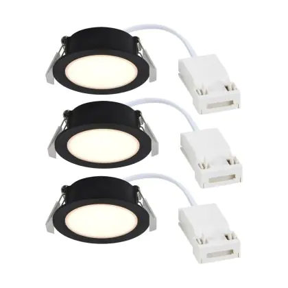 Multipack 3x Nordlux Downlight Olea Black 4.4W 345lm 110D - 930 | 68mm - IP65 - Best Colour Rendering