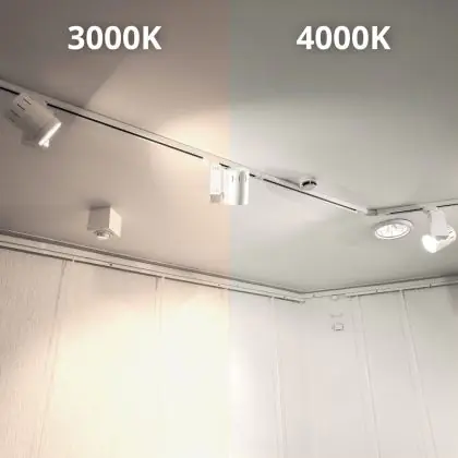 This fixture has a color temperature of 4000 Kelvin. This is a cold, white light that keeps people focused and awake. It is mostly used in offices or medical area’s.