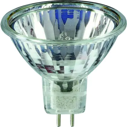 Philips Brilliantline Dichroic corresponds to halogen lamps with reflectors, comprising a neon filled halogen burner, and with an axial filament in a glass reflector.