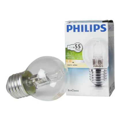 Philips EcoClassic Lustre Clear P45 are halogen lamps suitable for mains voltage. These lamps provide excellent energy efficiency while being dimmable and instantly start up. The lamps are equipped with a E27 base, they are very easy to install. They have a P45 type shape.
