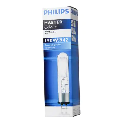 CDM-TP light bulbs are ceramic burner double casing discharge lamps. They are characterized by excellent luminous efficiency and colours will remain stable throughout the life of the lamp. Philips CDM-TP 150W 942 PGX12-2 have a PGX12-2 base type, which allows them to replace your old halogen lamps without changing your installation. With an average lifespan of 16000 hours, Philips CDM-TP 150W 942 PGX12-2 enable energy savings of 30% compared to normal lamps.