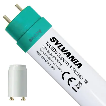 Description Sylvania LED Tube T8 ToLEDo Superia (EM/Mains) Standard Output 32W 3200lm - 840 Cool White | 150cm - Replaces 58W