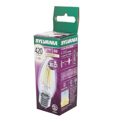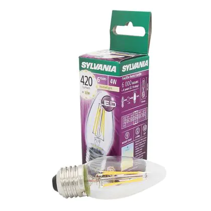 Sylvania ToLEDo E27 Candle Filament Clear 4W 420lm - 827 Extra Warm White | Replaces 40W