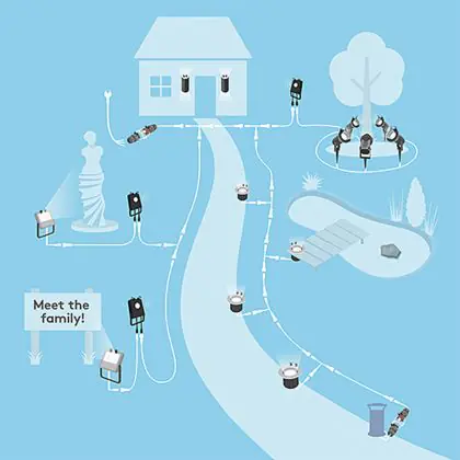 Lighting with a voltage of 220-240 Volt can be connected directly to the mains. Lighting with a different mains voltage (12 Volt and 24 Volt) requires an (electronic) transformer.